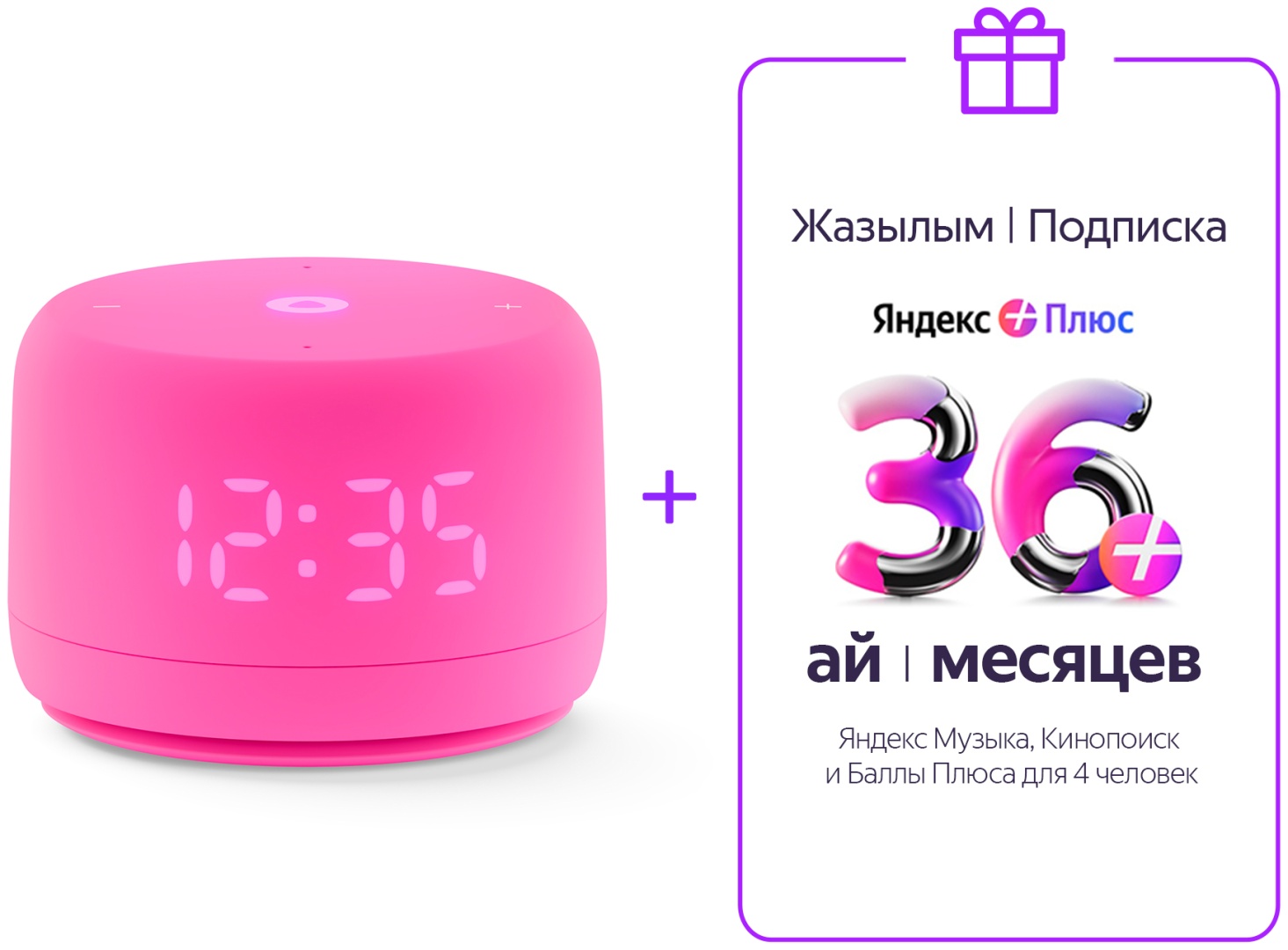 Умная колонка Яндекс Станция Лайт с Алисой Второе поколение Розовый + Подписка Яндекс Плюс 36 месяцев