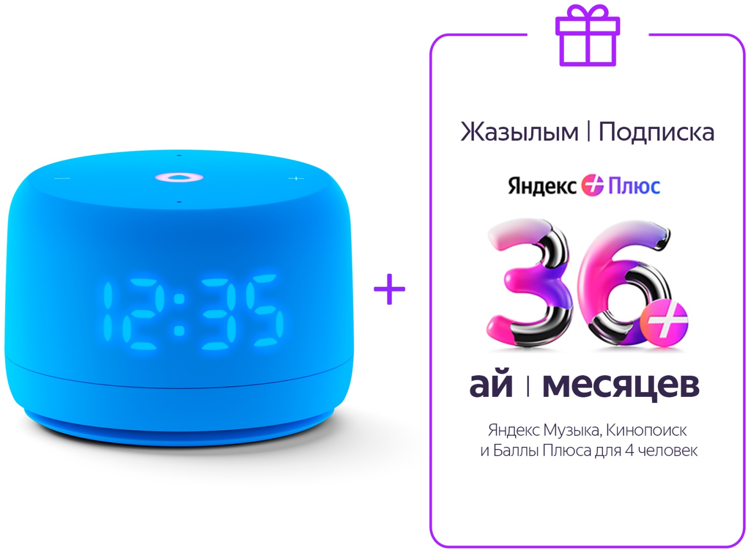 Умная колонка Яндекс Станция Лайт с Алисой Второе поколение Синий + Подписка Яндекс Плюс 36 месяцев