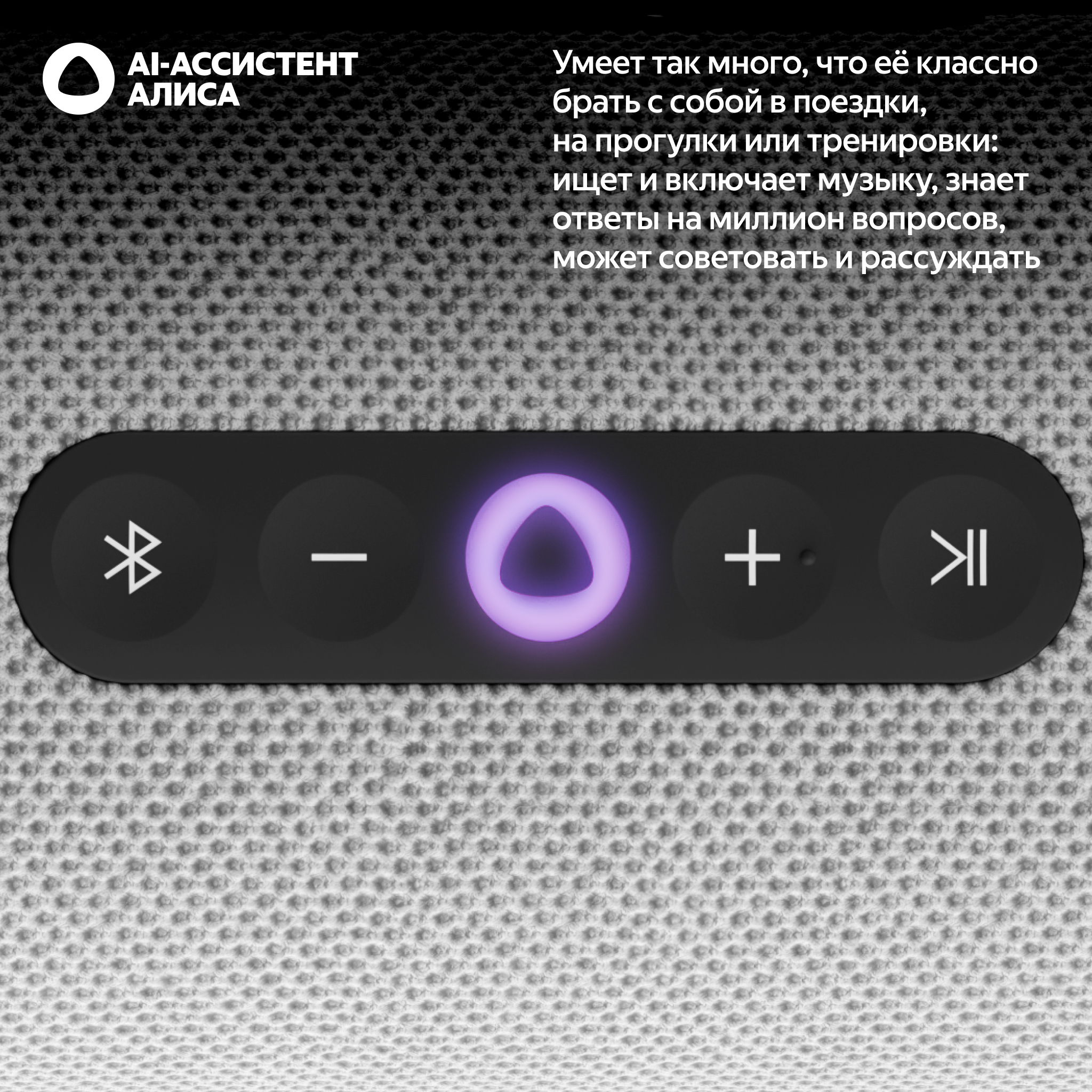 Алиса будет на связи с вами там, где есть мобильный интернет, — просто подключите умную колонку к Wi-Fi® точке доступа на смартфоне. А если такой возможности нет, можно связать Яндекс Станцию Стрит с телефоном по Bluetooth® и управлять музыкой с помощью быстрых команд, например: «Дальше», «Громче», «Стоп».
